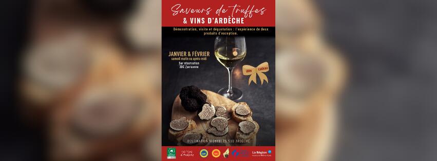 L'événement Saveurs de truffes et vins d'Ardèche revient sur la destination Vignobles Sud Ardèche ! A partir du 20 janvier, les samedis matin jusqu'à fin février, venez partager la passion des producteurs. Places limitées, pensez à réserver ce moment gourmand ! En manque d'idée cadeau pour Noël, n'hésitez plus, offrez un moment gourmand et convivial d'Ardèche.
