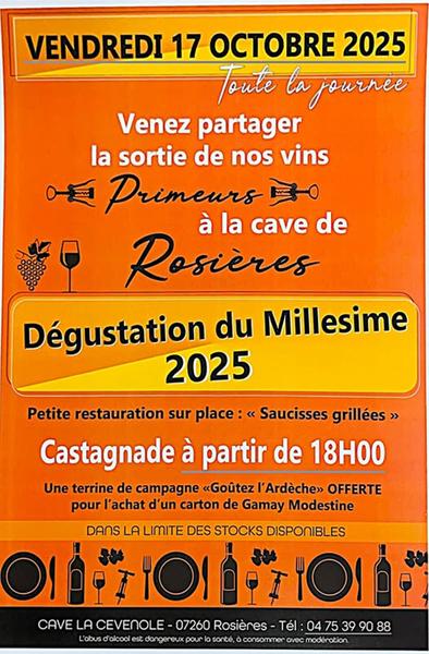 Dès 18h, venez partager un bon moment pour notre dégustation des vins primeurs accompagnée d'une castagnade, charcuterie et fromage.