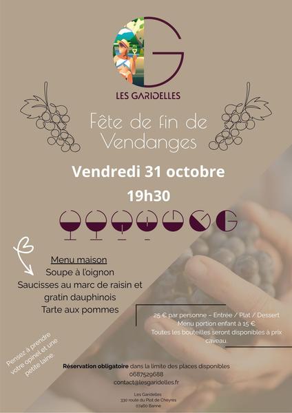 Les vendanges sont terminées, les vins se préparent Il est temps de souffler un peu et de partager un repas tous ensemble. Nous vous donnons rendez-vous dans le chai pour une soirée vigneronne.