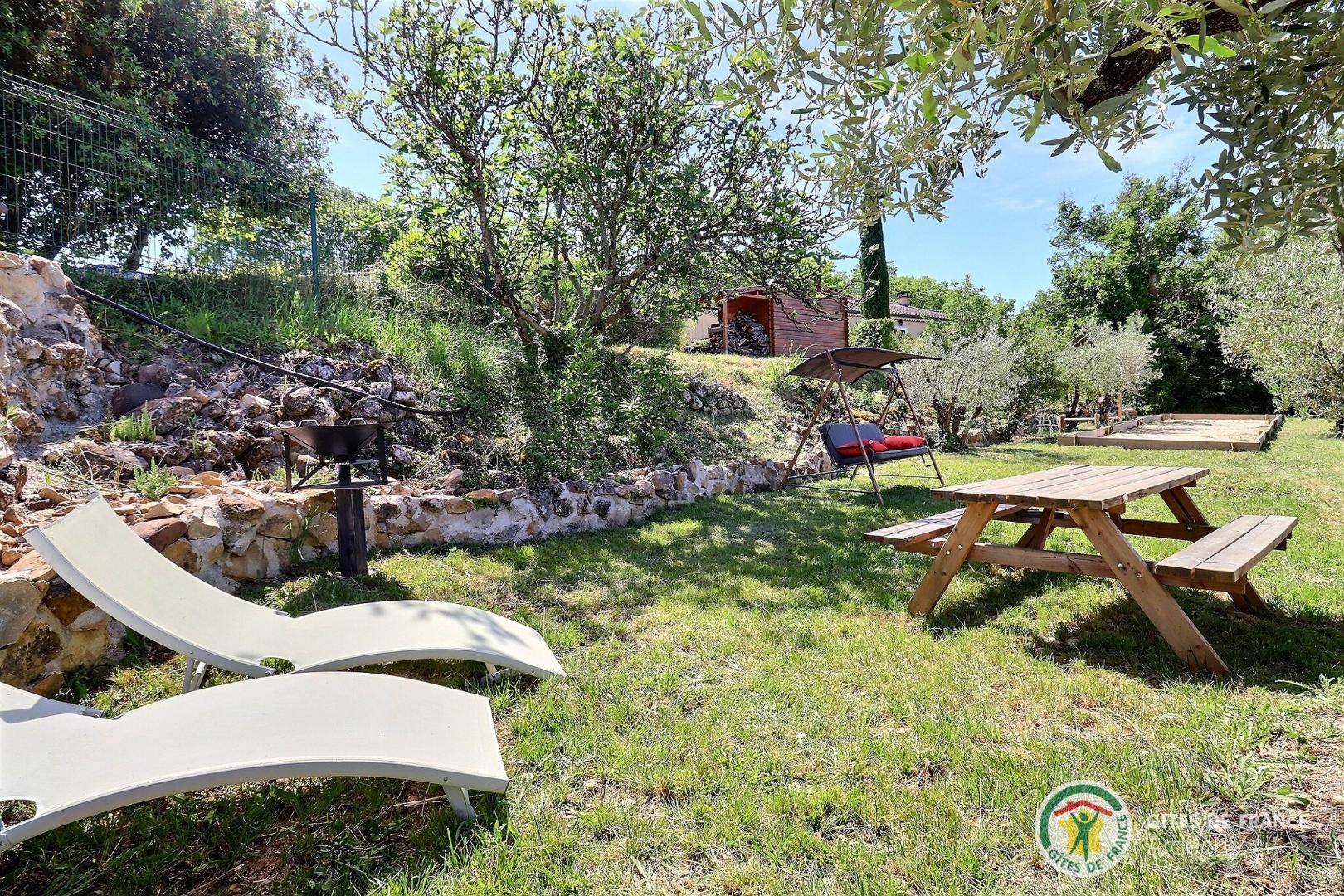 Séjour, coin-cuisine intégrée, coin-salon avec convertible 2 pers, cheminée, ch1(1 lit 160), ch2(1 lit 1 pers., 1 lit 2 pers.), salle d'eau, wc, ch.électrique, terrasse couverte, terrain, abri voiture. Baignade dans l'Ardèche à 1 km, Ruoms avec tous commerces à 2.5km. Maison du propriétaire à proximité, sa piscine à disposition de 10h à 12h et de 14h à 20h.